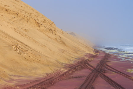 Off road desert adventure, car and tracks on sand. Namibia, Africa