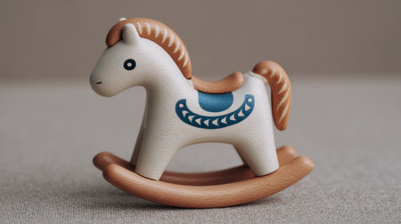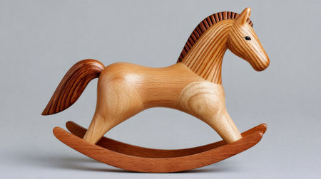 Wooden rocking horse crafted from different wood types, signifying childhood, toys, and craftsmanship
