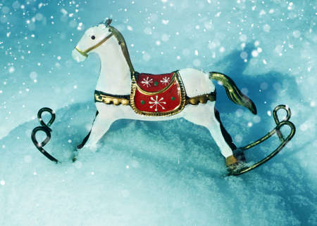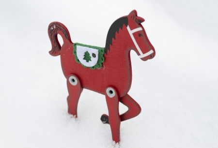 Red wooden horse on the snow