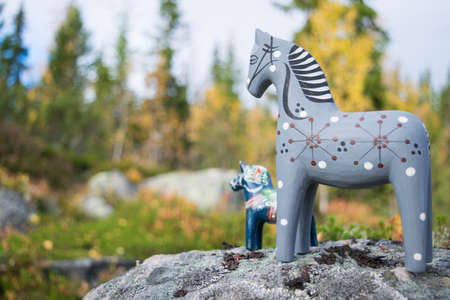 Beautiful Dalacarlia horse or ",Dalahast", a cultural symbol for the county of Dalarna and Sweden