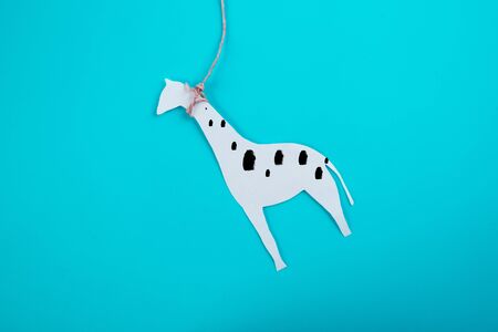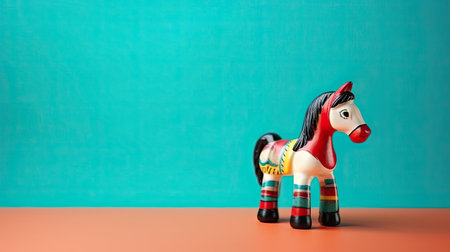 Toy horse on a turquoise background with copy space for text