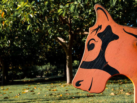 wooden head of a rocking horse in a childrens playground