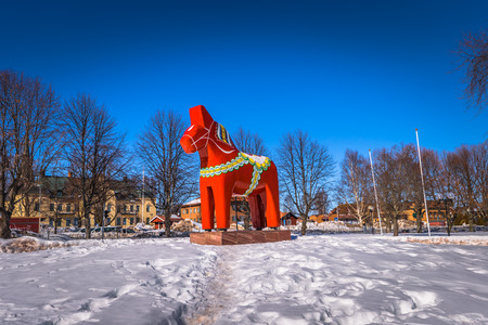 Mora: Traditional Dalarna horse in the town of Mora in Dalarna, Sweden