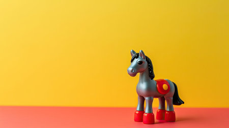 Toy horse on yellow and red background. Copy space for text.