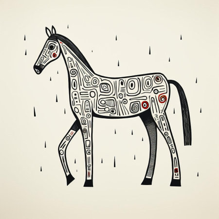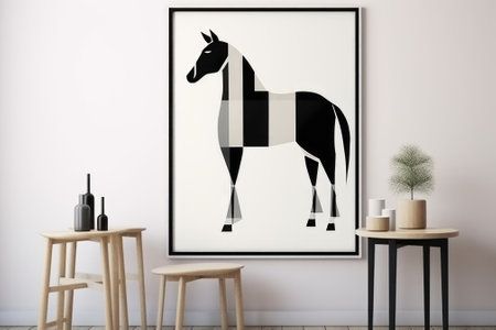 A black and white horse print on a wall, AI