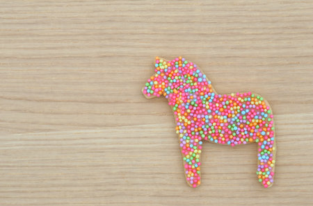 Horse cookie on wooden table