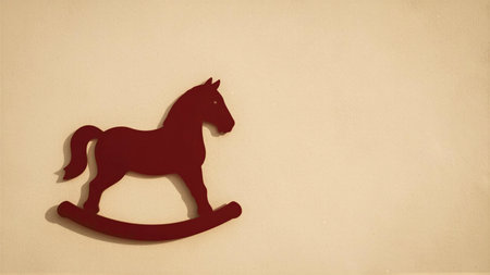 A minimalist silhouette of a rocking horse against a textured background.