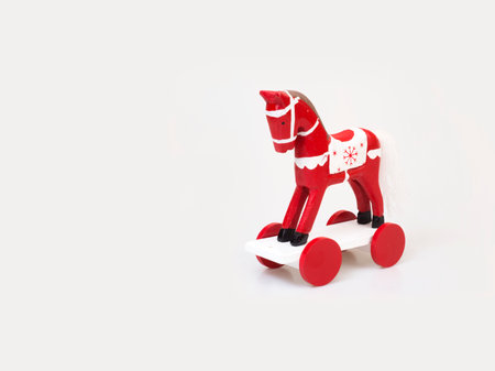 Red horse on wheels (Christmas tree toy) isolated on a white background