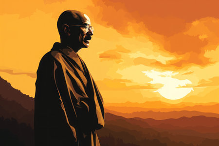 Serene Monk robe city walk. Tradition statue. Generate Ai
