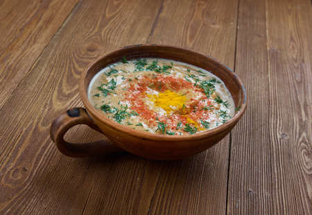 Uzbek soup kakarum - dish with sour milk and onions