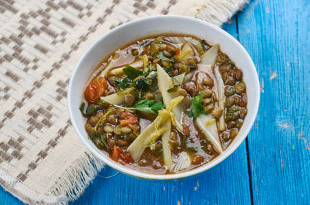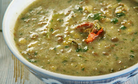 Mediterranean spicy spinach lentil soup , close up