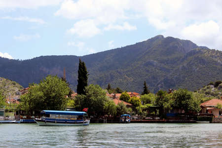 June 21, 2021 Dalyan.Turkey.View of the canal and boats in Dalyan.