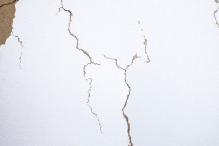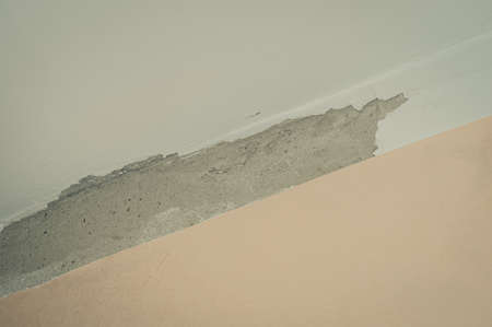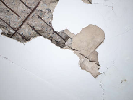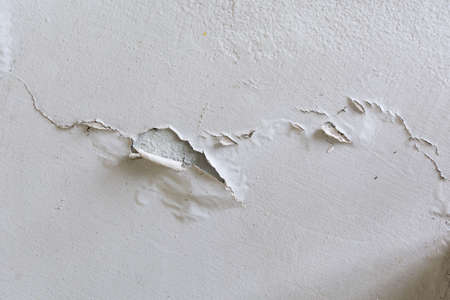 Clacked cement of white wall waiting for repair.