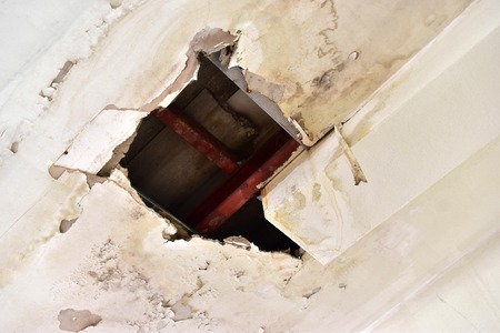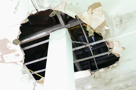 gypsum ceiling decay hole interior office building