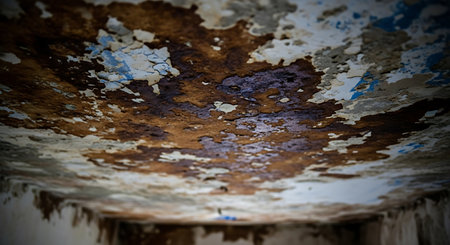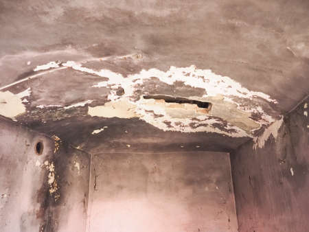 Peeling Paint on Damaged Ceiling in an Old Building. High quality photo