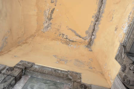damage caused by damp moisture and water infiltrations on wall and vault ceiling