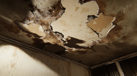 Water Damaged Ceiling A Stark Reminder of Neglected Home Maintenance and Urgent Repair Needs