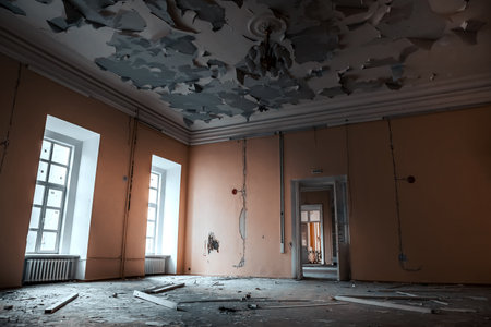 Ruined abandoned room in a house requiring major repairs