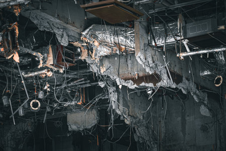 Wiring inside a collapsed building. Shooting Location: Nishi Ward, Yokohama City