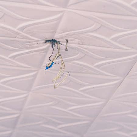 broken ceiling in the room and fallen celier