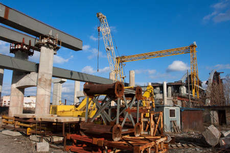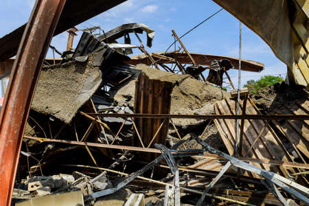 Part of destroyed industrial building at demolition site