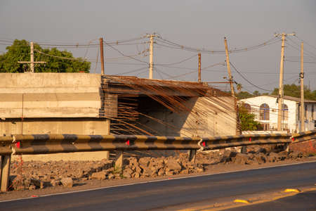 Abandoned construction. Highway overpass construction. Site of under construction viaduct.