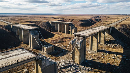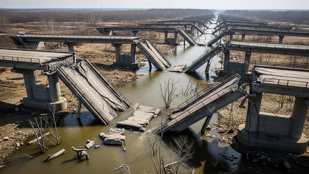 Destroyed bridge. Generative AI