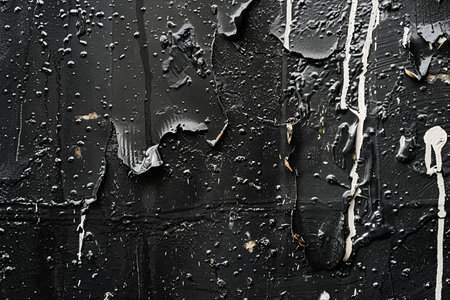 This macro photograph showcases a stunning abstract texture of yellow and black paint, highlighting intricate details of cracked and peeling layers.