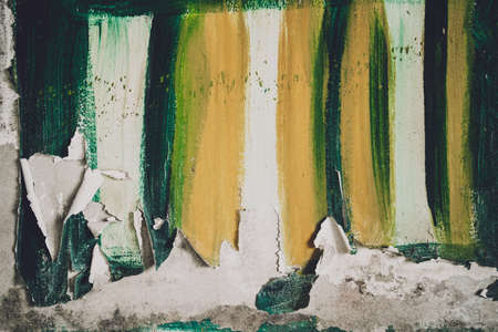 A close up of a peeling paint on a wall. Colorful grunge wallpaper background.