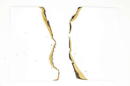 burned white paper on a white background. space.