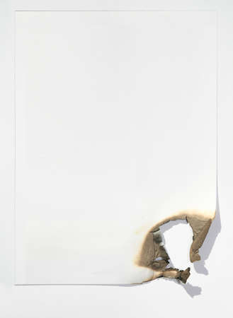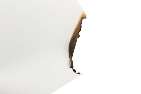 the sheet of paper by the burned edge against the white background