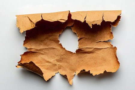Burned paper on white background. Paper element can be used in design