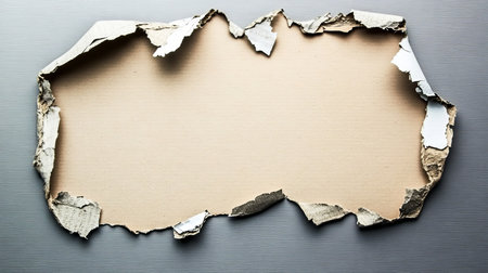 Brown paper torn to reveal white panel for text with copy space
