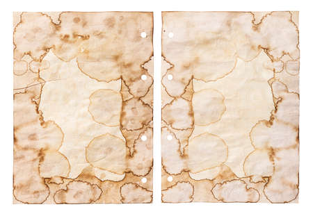 Bunch of Old vintage rough texture retro paper with burned edges, stains and scratches background