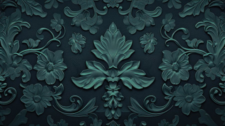 Art Nouveau-Inspired Elegant Dark Damask Pattern with Stylized Floral Texture and Embossed Surface