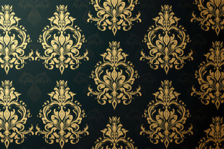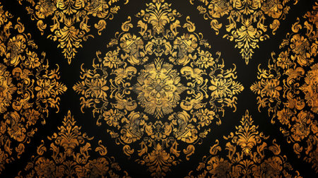 Gold and black damask pattern background with luxury vintage floral design. Vector illustration seamless wallpaper for wall paper, web banner, packaging, textile print, fabric, cover, poster or presentation template. ,8k, ultra detailed, photo realistic high resolution --ar 3:2 --v 6.1 Job ID: f95ccc71-049f-44ae-94ab-2402c10ad53c