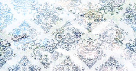 Damask vintage ornament. Floral pattern on a blue background.