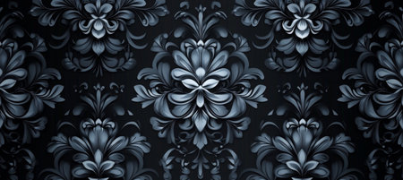 Dark Elegance and Sophistication in Damask Wallpaper Texture with Ornate Black Ornament Design Motif