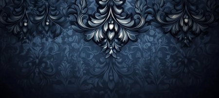 Elegant Damask Pattern in Navy Blue Colors for Exquisite Designs, Perfect for Decorative Interiors.