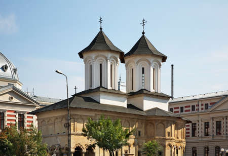 BUCHAREST, ROMANIA - JULY 16, 2018: The Orthodox Church of Zlatari between new buildings, located on Calea Victoriei and built in 1635.