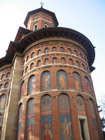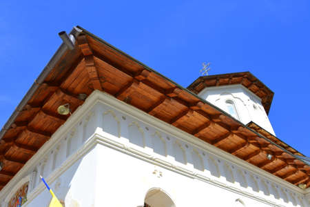 Architectural details, beautiful view of an orthodox church monastery near Bucharest, Romania, 2021