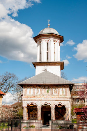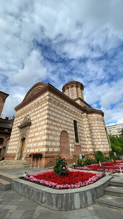 BUCHAREST, ROMANIA - AUGUST 16, 2021: Medieval Antim monastery of All Saints in city of Bucharest, Romania