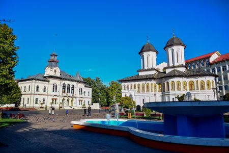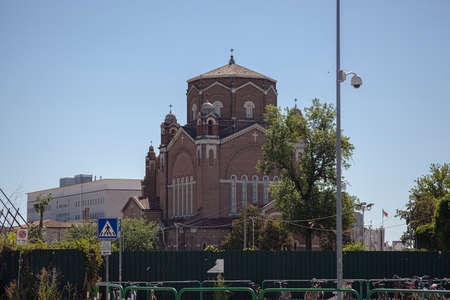BUCHAREST, ROMANIA - AUGUST 16, 2021: Patriarchal Palace and Cathedral of Saints Constantine and Helena in city of Bucharest, Romania