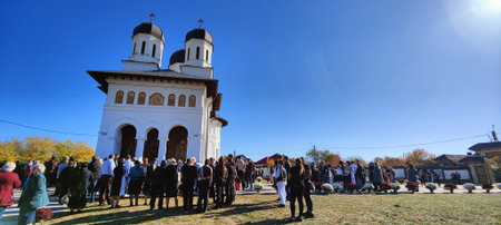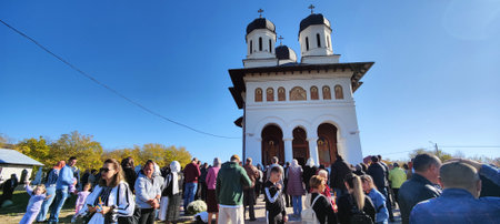 Unidentified people visit Cathedral of St. John the Baptist in Novaci Romania