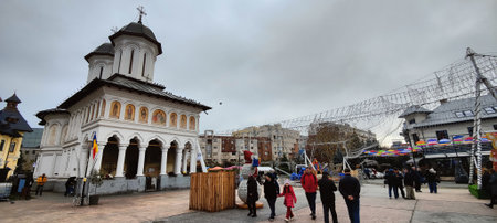 Bucharest, Romania - March 16, 2019: people visiting church Sfantul Antonie Curtea Veche situated in Old Town part of Bucharest, Romania.