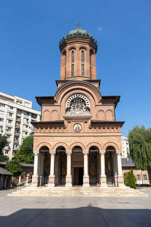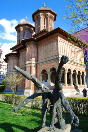 September 22, 2017 Bucharest/Romania - Cretulescu (Kretzulescu) Church, an Eastern Orthodox church in Brancovenesc style and the monument dedicated to Corneliu Coposu