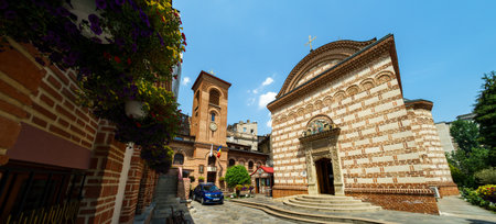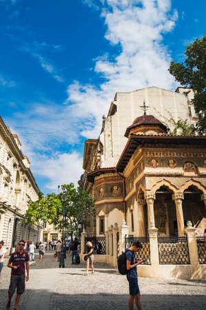 Bucharest, Romania - September 9, 2017: Historical center of old Bucuresti with beautiful Romanian architecture on Stavropoleos Street, Romania.