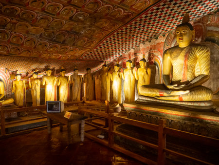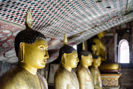 Image of Buddha statues in a cave at the ancient Rock Temple, Dambulla, Sri Lanka.