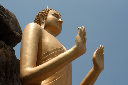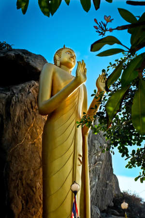 Large Buddha statue standing with a height 16 meters,located at the foothill in Wat Khao Takiab,Hua-Hin beach,Prachuap Khiri Khan.