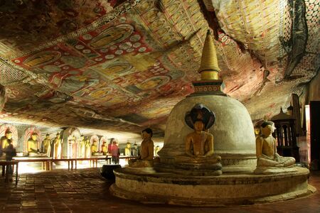 Buddhist stupa in the interior of ancient cave Buddhist temple. Dambulla, Sri Lanka